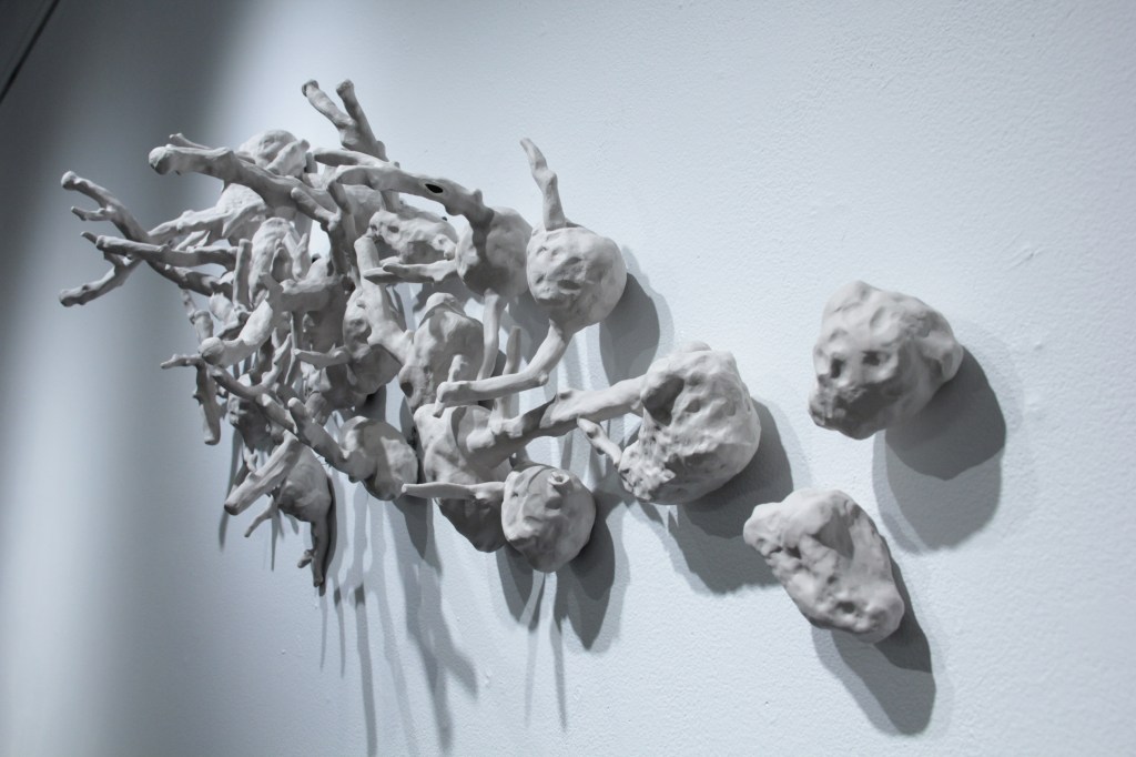 Similar to many people around the world, my family has been impacted personally by Alzheimer’s Disease. I wanted to create a piece that brought the biology and the human experience (for both patients and caregivers) of the disease together. The wall piece mimics the process of neurons losing their connection over time. Made with porcelain slip cast.